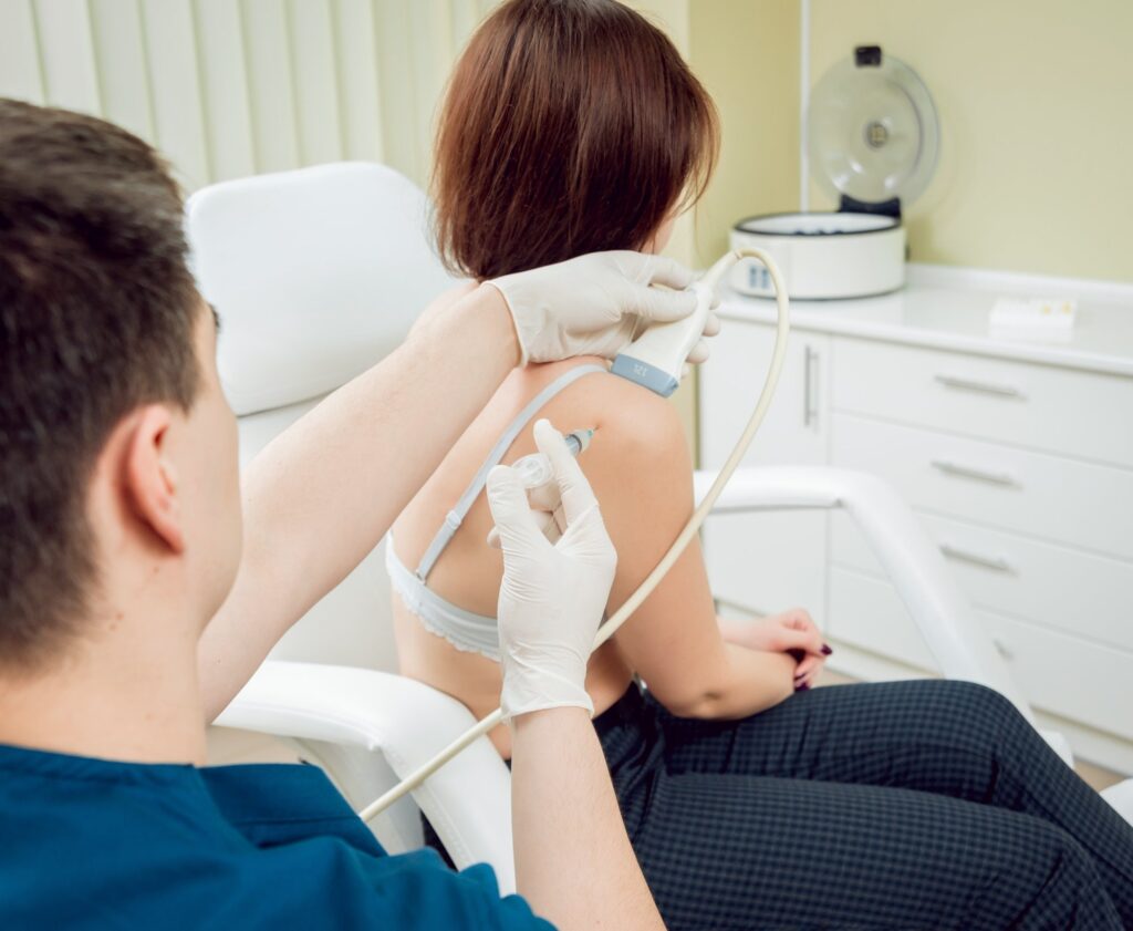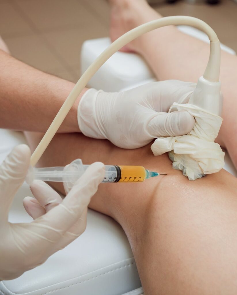 After creating platelet-rich plasma from a patient’s blood sample, that solution is injected into the target area, such as an injured knee or a tendon. In some cases, Dr. Krushel will use ultrasound to precisely guide the injection. The goal is to increase the concentration of specific bioproteins or hormones, called growth factors, in the specified treatment area to accelerate the healing process.
